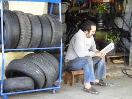 Enquanto os clientes não aparecem, uma das coisas que o Manoel borracheiro mais gosta de fazer é descobrir nos livros, novas idéias, se aventurar nos estilos e desvendar o que tem por aí no mundo dos pneus.